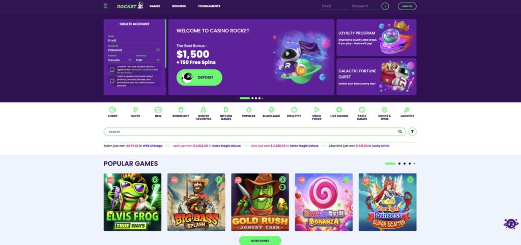 Rocket Casino made our list of best online casinos that accept Google Pay for its amazing selection of table games, live dealer games, and slots from NetEnt, NYX, and BGaming. Interac withdrawals are processed instantly after approval, with limits from C$20 up to C$6,000 per transaction. E-wallets like MuchBetter, Jeton, MiFinity, and EcoPayz are also instant. This online casino offers 24-hour live chat and email support.