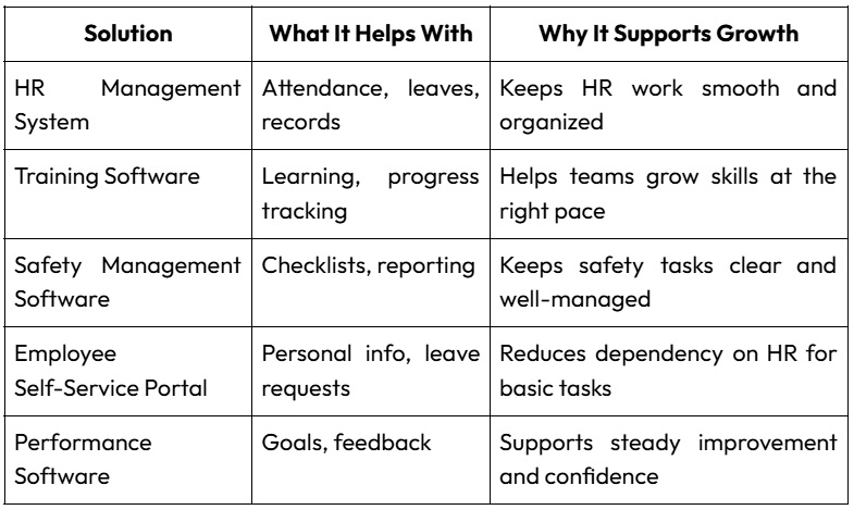 These solutions support better communication, proper record keeping, and clear planning. They also help new employees settle in fast because information is easy to access, and processes become simpler to follow.