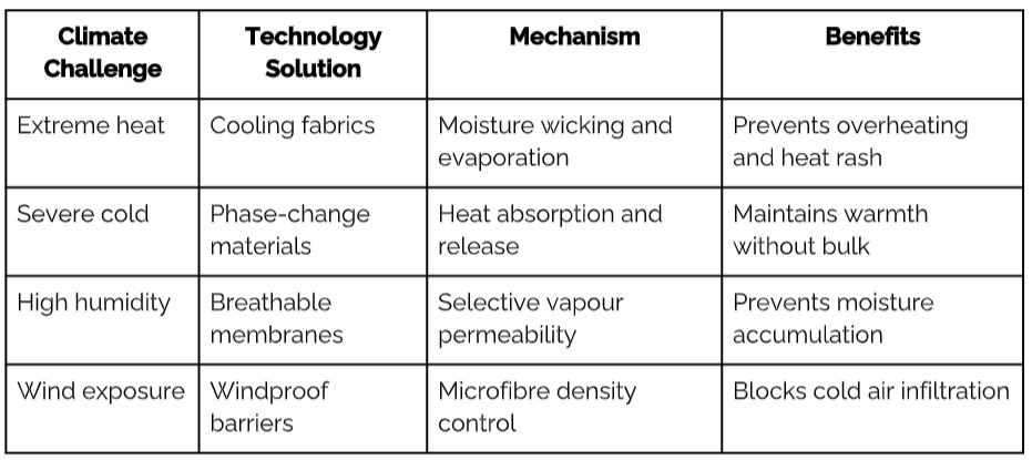 ● Moisture-wicking fibres: Transport sweat away from the skin surface.
