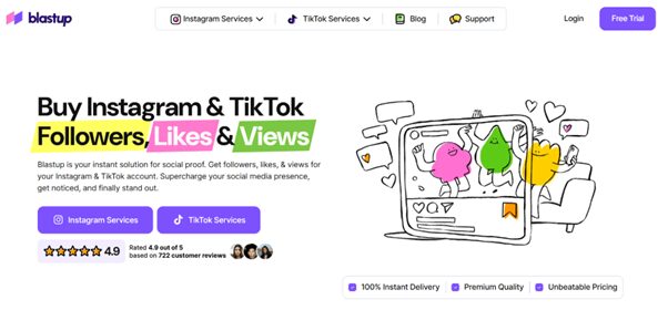 Blastup is another reputable growth platform to consider. Blastup gives you the control you need over how and when your engagement increases. With Blastup, you get the following: