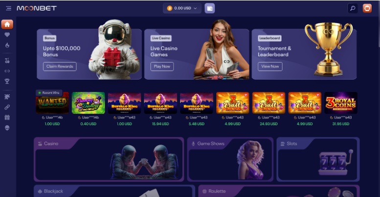 Moonbet offers 6,000+ titles from 50+ studios, most third-party audited by agencies such as e-COGRA, and offers a 97%+ RTP.