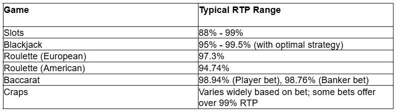 Here’s a glimpse at the RTP ranges you might encounter: