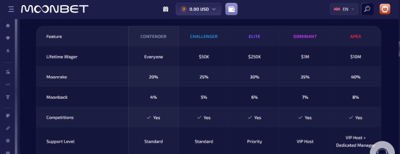 Moonbet’s Five-Tier System