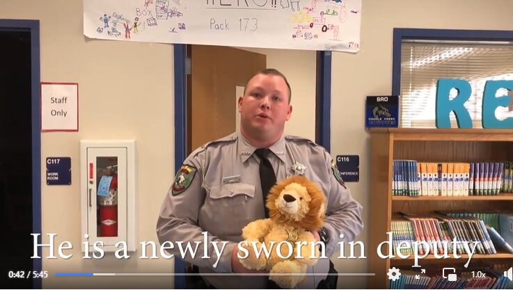 In the video, Leo the Lion is sworn in by Iredell County Sheriff Darren Campbell, who tells Devin to never lose “your inner lion.”