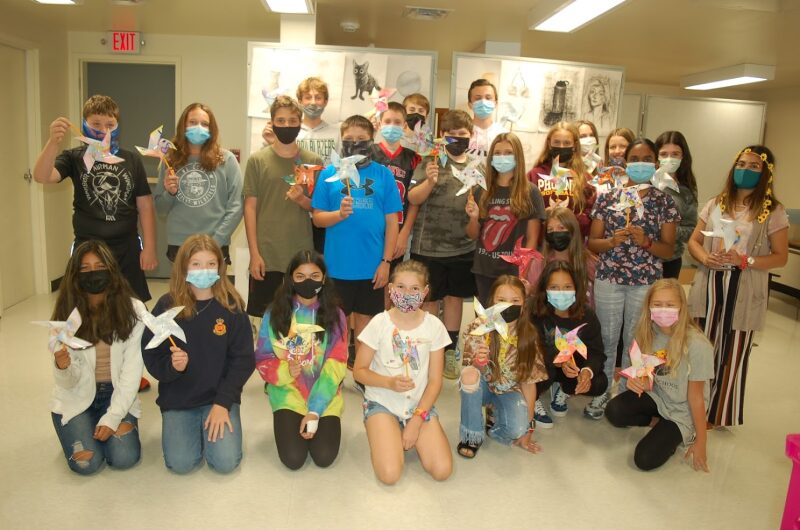 Art teacher Edelweiss Vogel chose to engage her middle school students in the Pinwheels for Peace project to enhance their awareness of the observance.