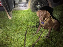 After Levi led the deputies in the direction of Scotts Creek Road, Johnson was located on 312 Scotts Creek Road property attempting to hide from deputies in the yard, according to the news release.