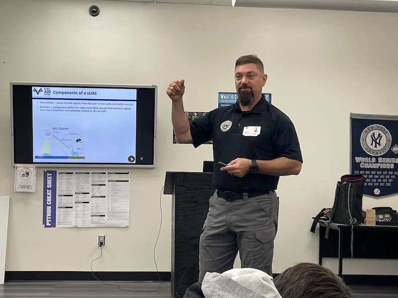 Civil Air Patrol Capt. David Leach provided a history lesson and shared some information about careers involving drones during a recent visit to Troutman Middle School.