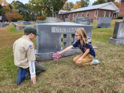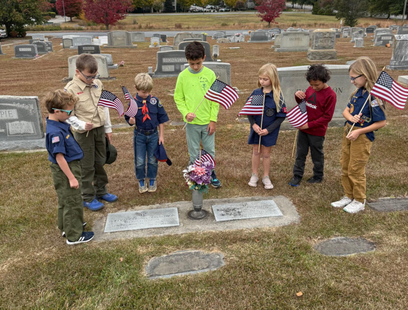 Cub Scouts from Cub Scout Pack # 173 recently placed American flags on the grave sites of veterans at Centre Presbyterian Church and Fair View United Methodist Church in Mt. Mourne in recognition of their service to their country. The flag placement was completed after the Scouts learned the history and meaning of Veterans Day. Close to 100 graves were marked by the Scouts.