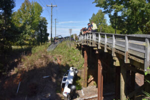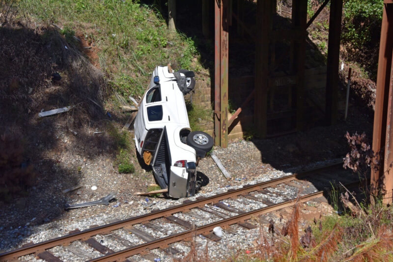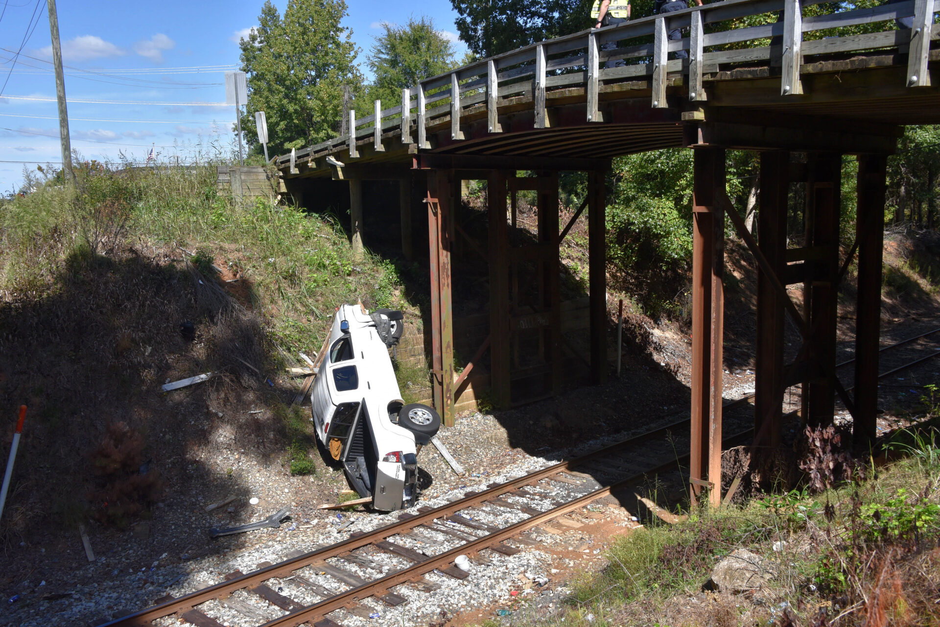 A representative from the railroad and the N.C. Department of Transportation also responded to evaluate the railroad tracks for possible and the guard rail.
