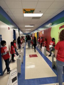 “Not all of our families know how to speak or understand English,” explained fifth-grade student ambassador Caroline McGuire. “We translated the script beforehand so we could read it in both English and Spanish.”