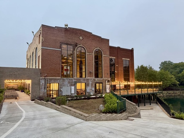 It took two years for owner Michal Bay to renovate the structure at 518 S Church Street in Mooresville’s Merino Mill complex. Bay preserved its historic red brick, soaring 50-foot-high ceilings, and tall archways. He added outdoor lighting and patio seating for al fresco dining overlooking a pond.