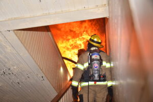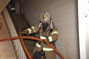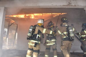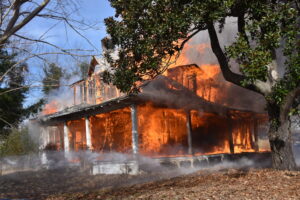 The Harmony Volunteer Fire Department conducted a live burn training on Saturday morning at a donated home off Harmony Highway. Personnel from Yadkinville, Lone Hickory, Sheffield-Calahaln, County Line, Ebeneezer, Shepherds, Union Grove, Central and Cool Springs departments all participated in the training. Several training sessions were completed before the structure was deemed unsafe and allowed to burn under their supervision. Firefighters experience the extremely high temperatures, poor visibility and physical strain while fighting a fire. There were no injuries reported, and this training sharpened their skills and help them better serve their communities. Harmony VFD Chief Wesley Sloan was in command of the operation.