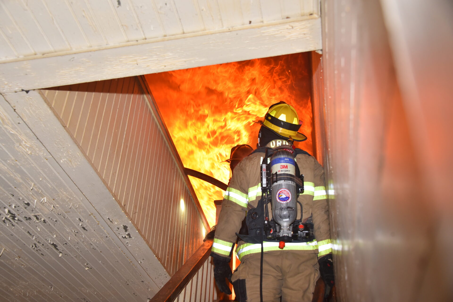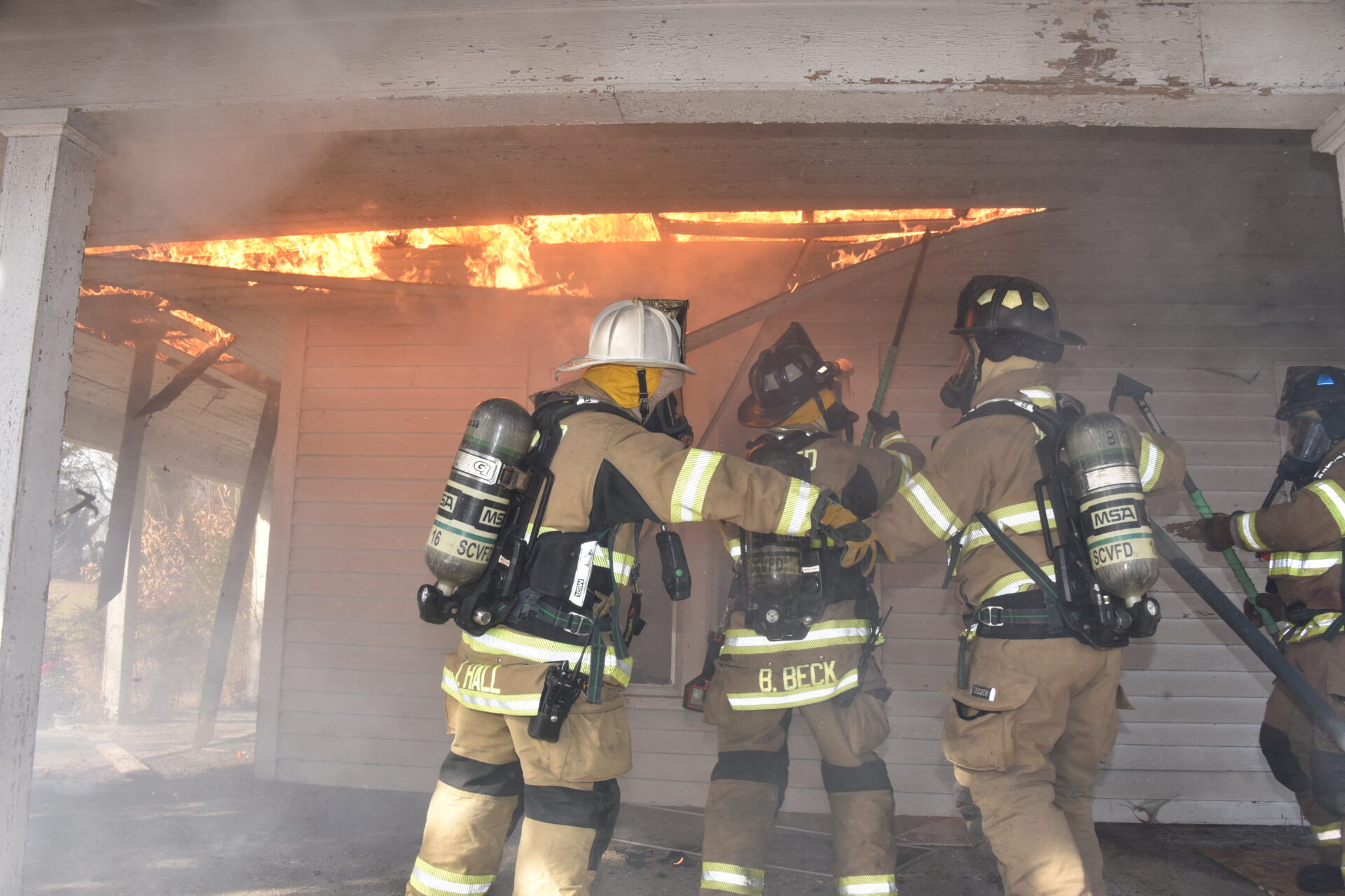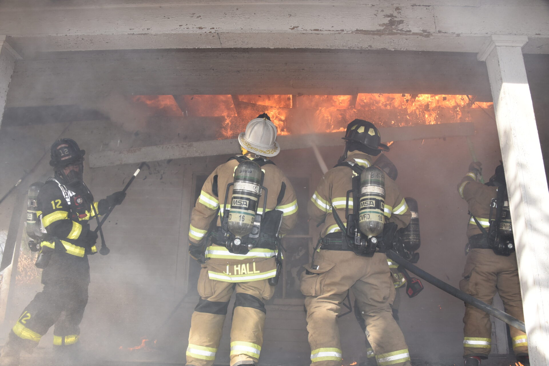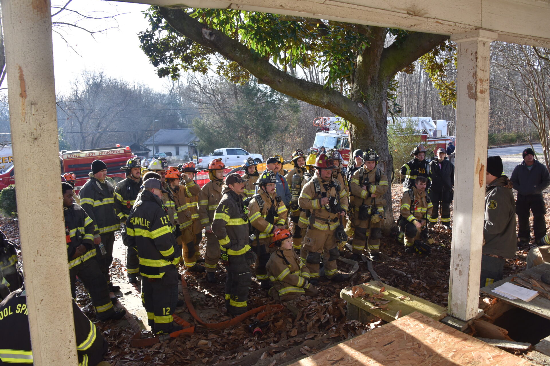 The Harmony Volunteer Fire Department conducted a live burn training on Saturday morning at a donated home off Harmony Highway. Personnel from Yadkinville, Lone Hickory, Sheffield-Calahaln, County Line, Ebeneezer, Shepherds, Union Grove, Central and Cool Springs departments all participated in the training. Several training sessions were completed before the structure was deemed unsafe and allowed to burn under their supervision. Firefighters experience the extremely high temperatures, poor visibility and physical strain while fighting a fire. There were no injuries reported, and this training sharpened their skills and help them better serve their communities. Harmony VFD Chief Wesley Sloan was in command of the operation.