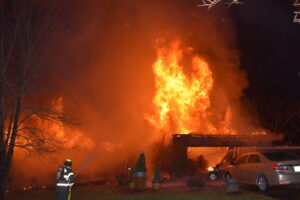 Troutman, Shepherds, and Mooresville fire and rescue personnel were alerted to a report of a garage fire on Kyle Lane about 4:50 a.m. Friday. Arriving units found a large, fully involved structure and a working fire was transmitted. The fire quickly went to a second alarm and Denver Fire Department’s boat was called to the scene, along with a call for increased staffing. The South Tanker Strike Team was put into operation with tankers coming from Cool Springs, Trinity, South Iredell, Monticello, Davidson, Ebeneezer and West Iredell fire departments. Multiple hose lines were put into operation and Denver’s Fire Boat put its master stream into operation. Fire fighters were able to rescue a cat from the raging fire. No injuries were reported, and the fire was placed under control at 7:11 a.m. The home was destroyed by the fire. The cause is under investigation.