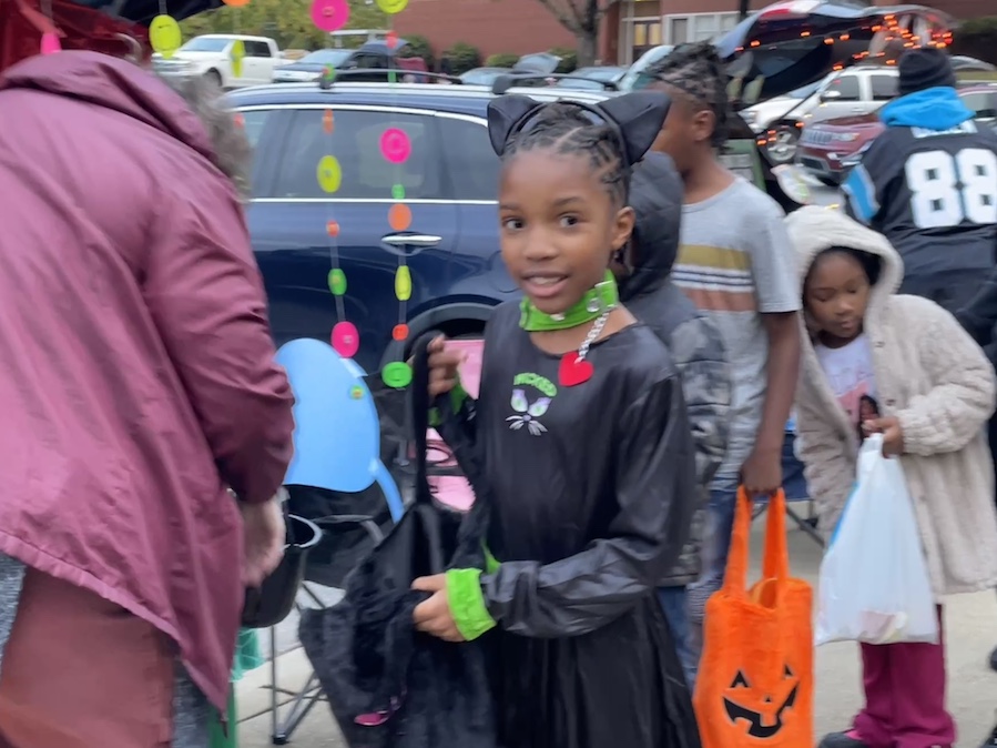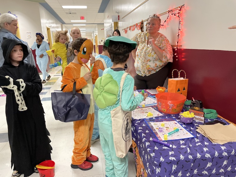 Student dressed up as Pokémon characters, princesses, dinosaurs, cheerleaders, superheroes and more while going around and trunk or treating.