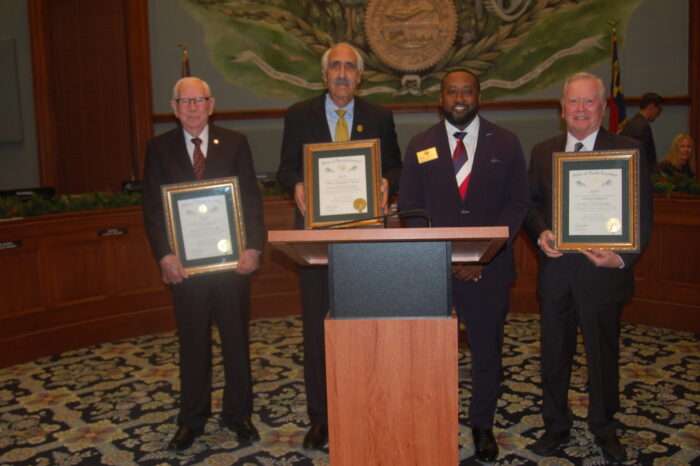 Kutteh, C.O. Johnson and Hudson were presented with the state’s highest civilian award, the Order of the Long Leaf Pine, by Walter Bowers, director of Gov. Josh Stein’s Charlotte office.
