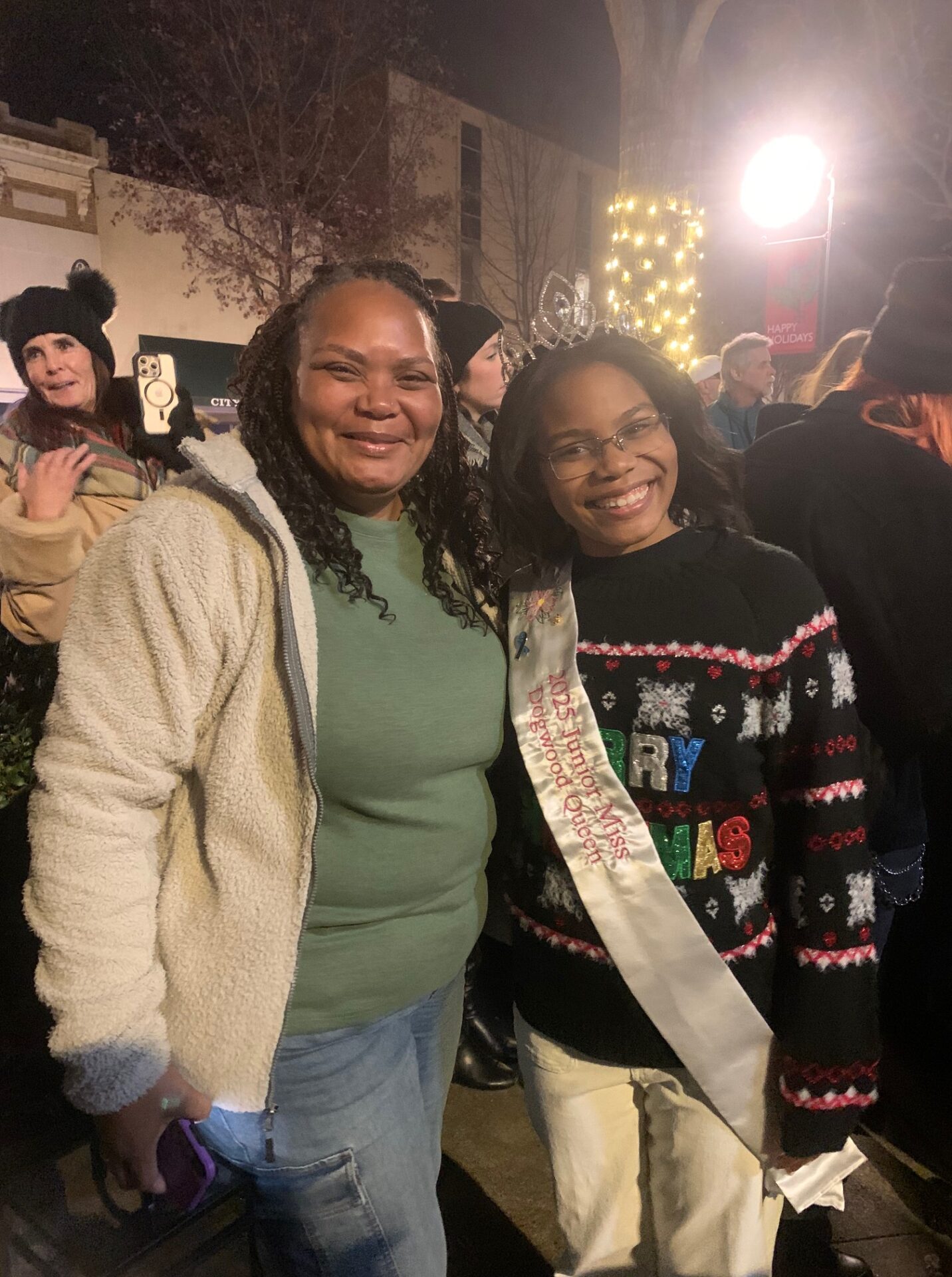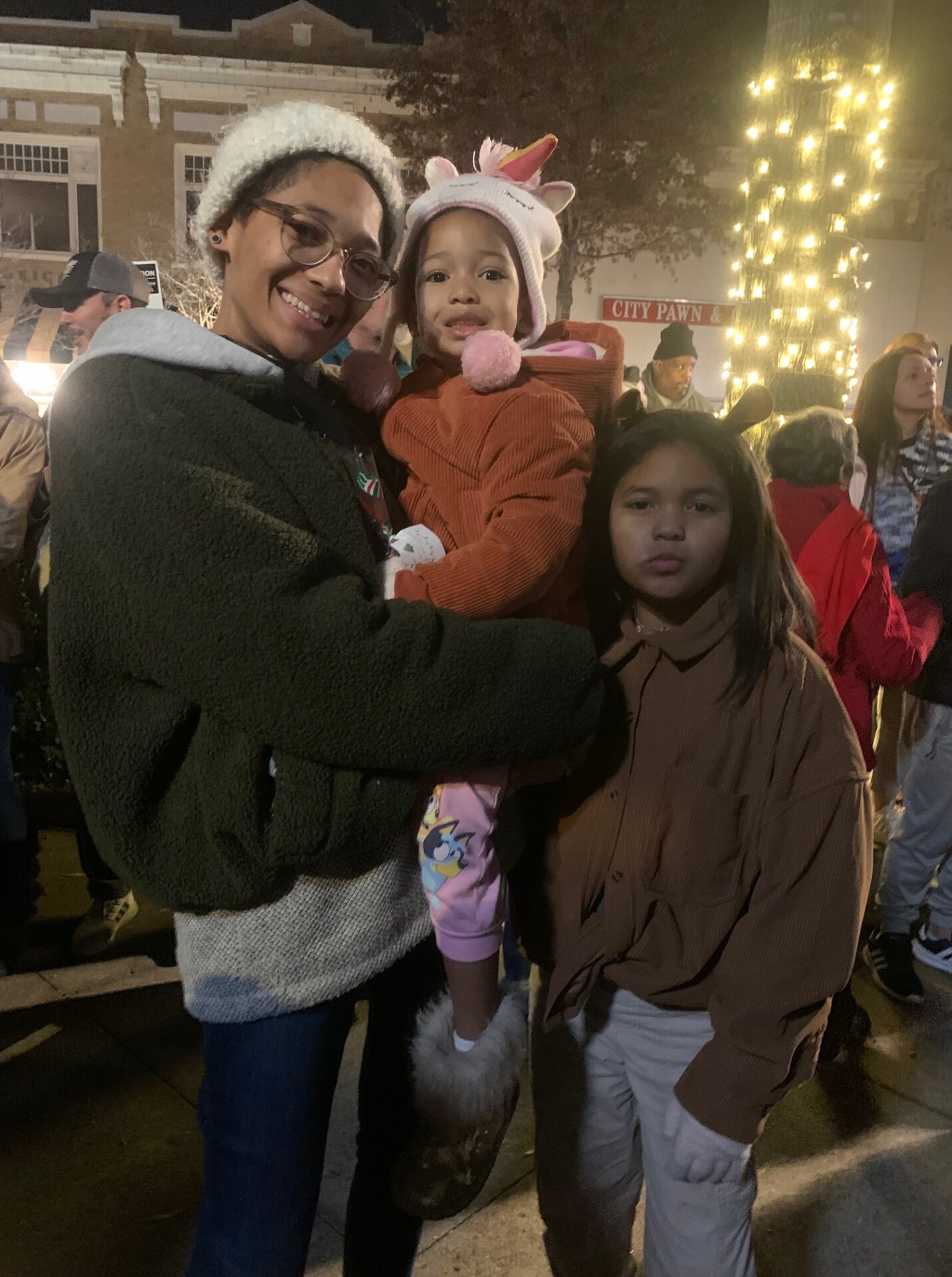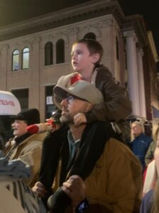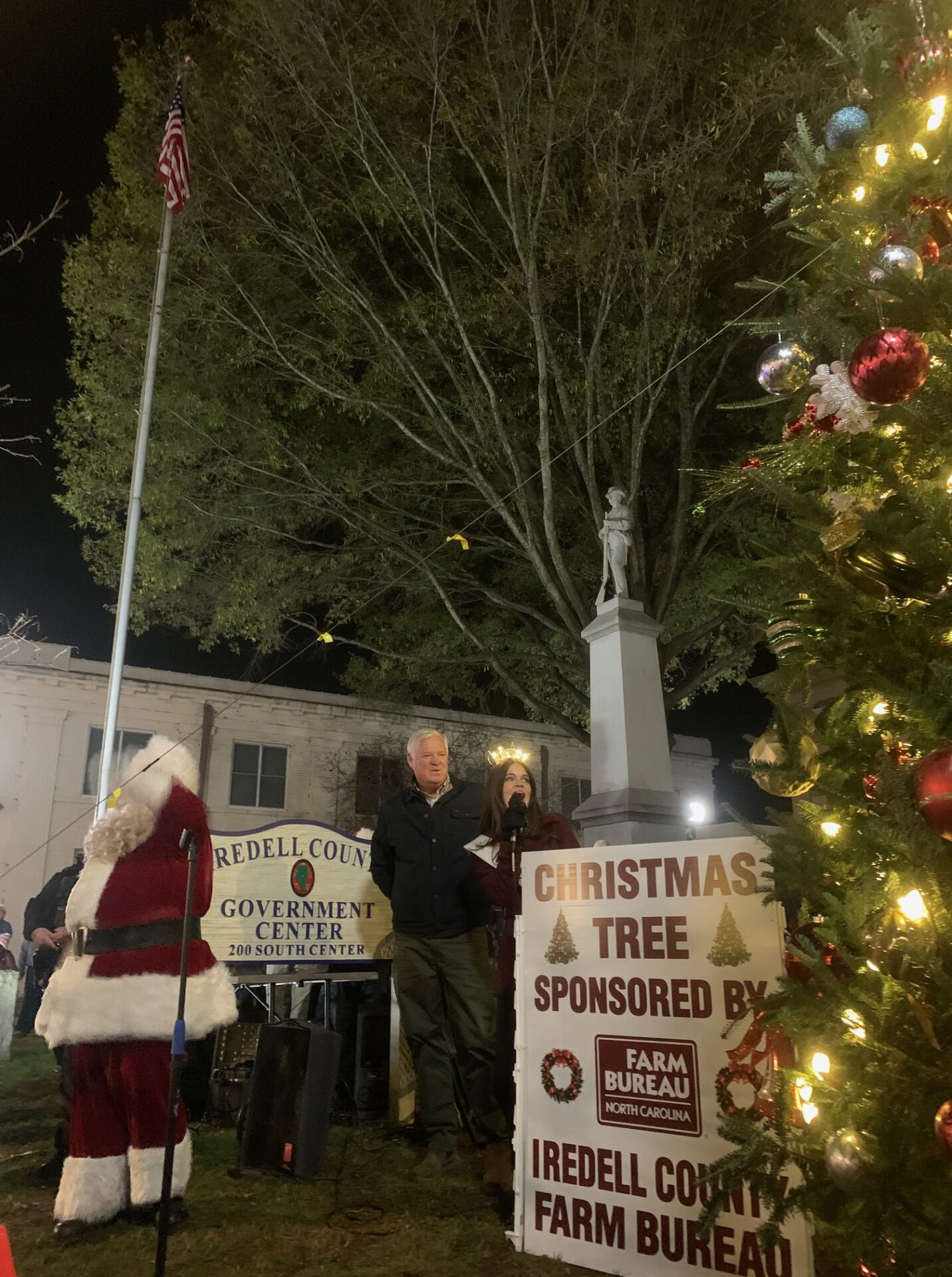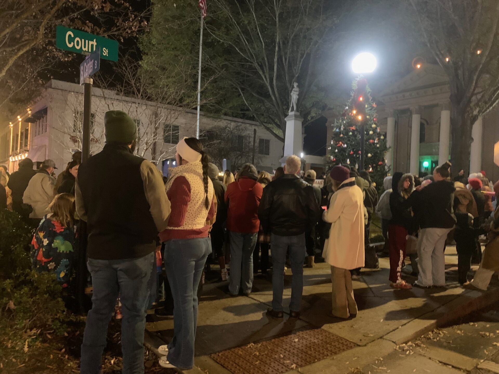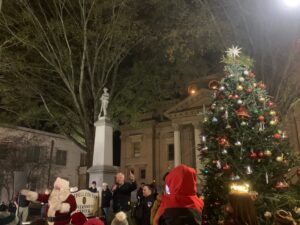 A large crowd gathered in Downtown Statesville on Thursday evening for the annual Christmas tree lighting ceremony. American Renaissance School’s chorus was on hand singing Christmas favorites and spreading holiday cheer. Afterwards, the crowd lit up with excitement when Santa Claus arrived in a vintage car.