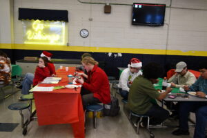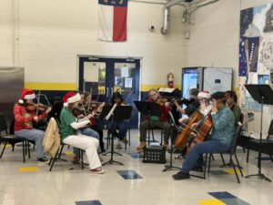 Student choral and musical groups entertained breakfast diners in the festively decorated South Iredell High cafeteria as Rotary Cub members dished up pancakes, eggs, bacon, and sausage.