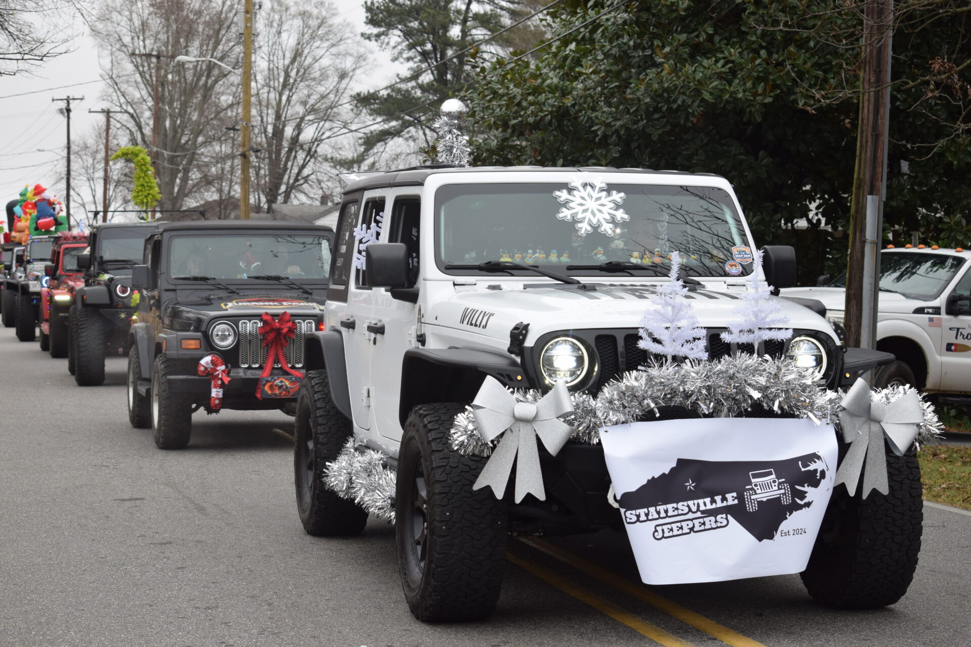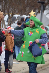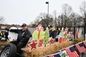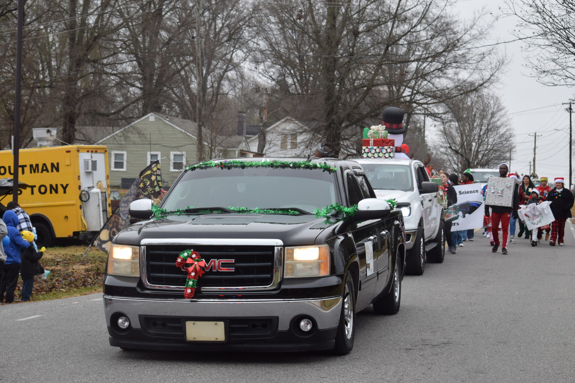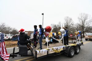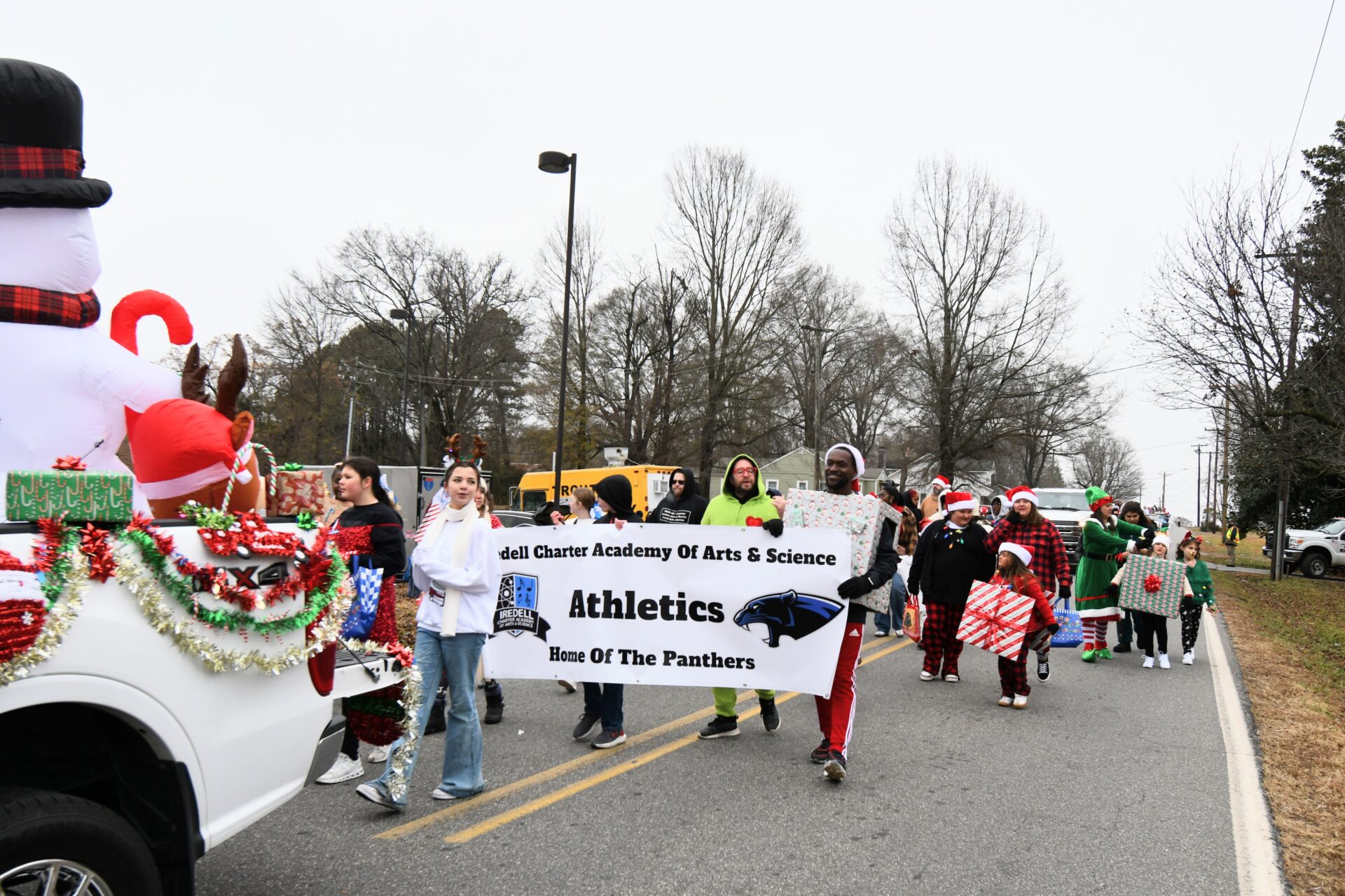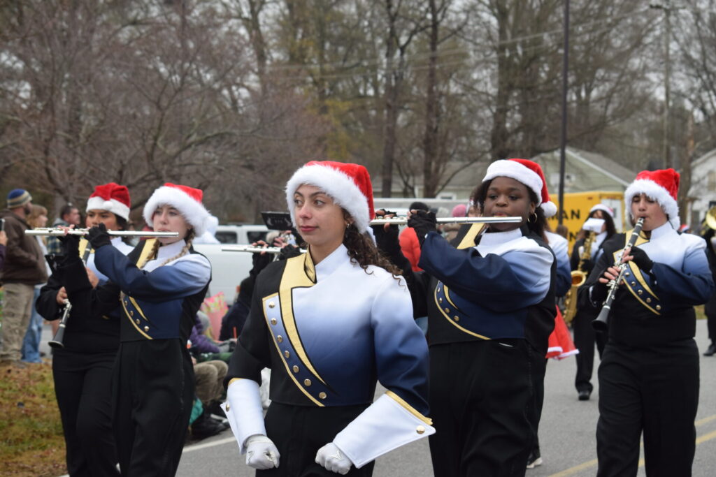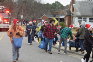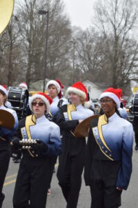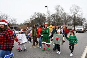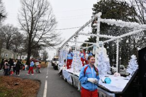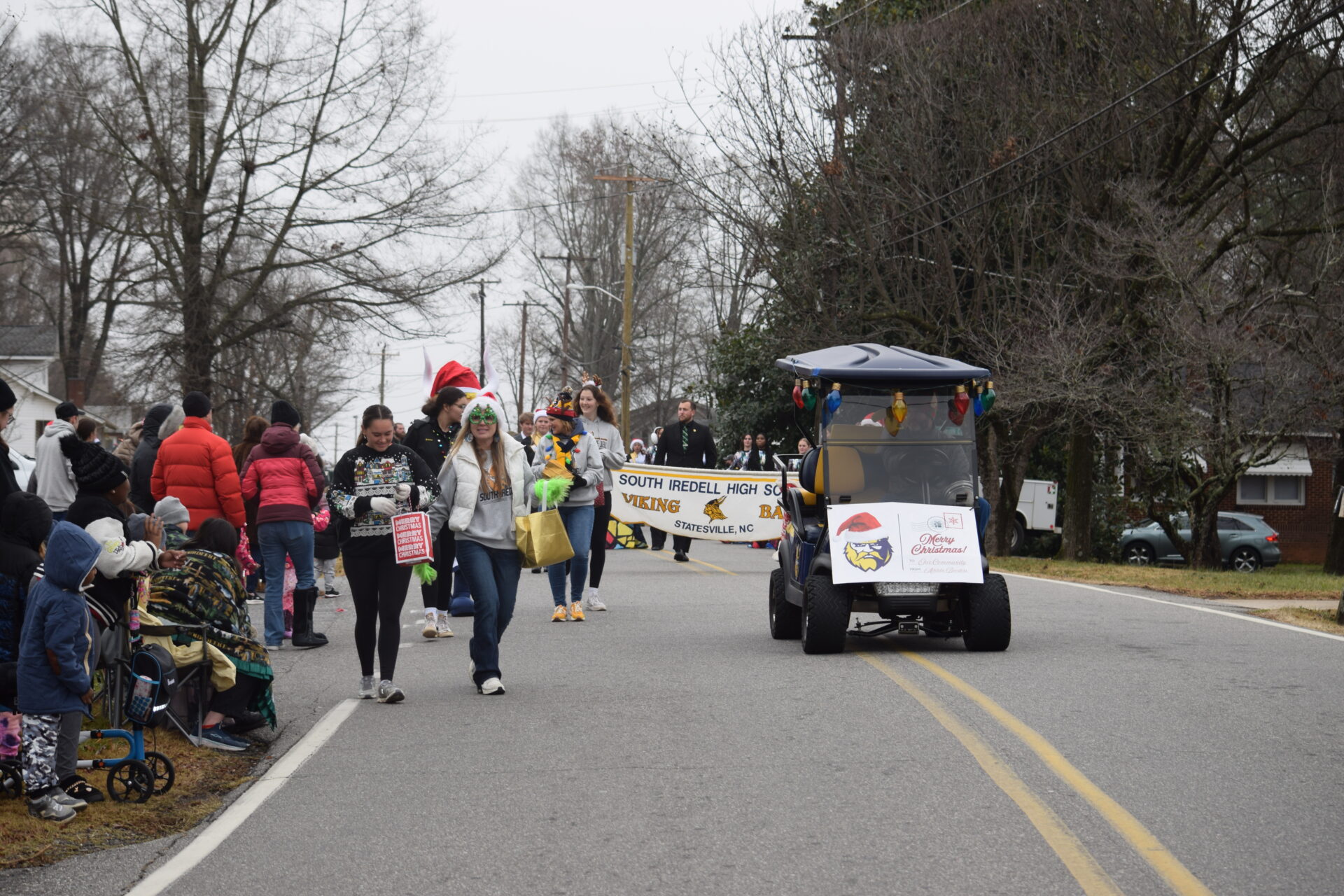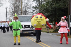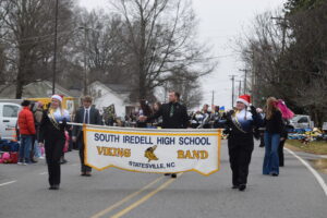 The South Iredell High and Statesville High bands belted out holiday tunes, and the North Iredell High float featured a snowy scene with the Abominable Snowman, Raider cheerleaders, and the NIHS mascot.