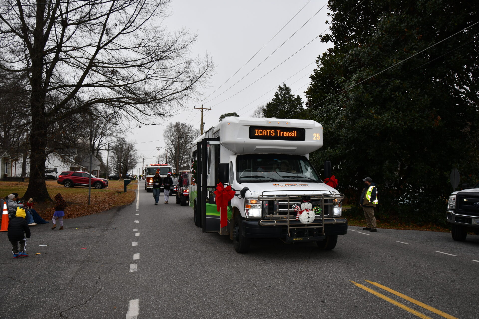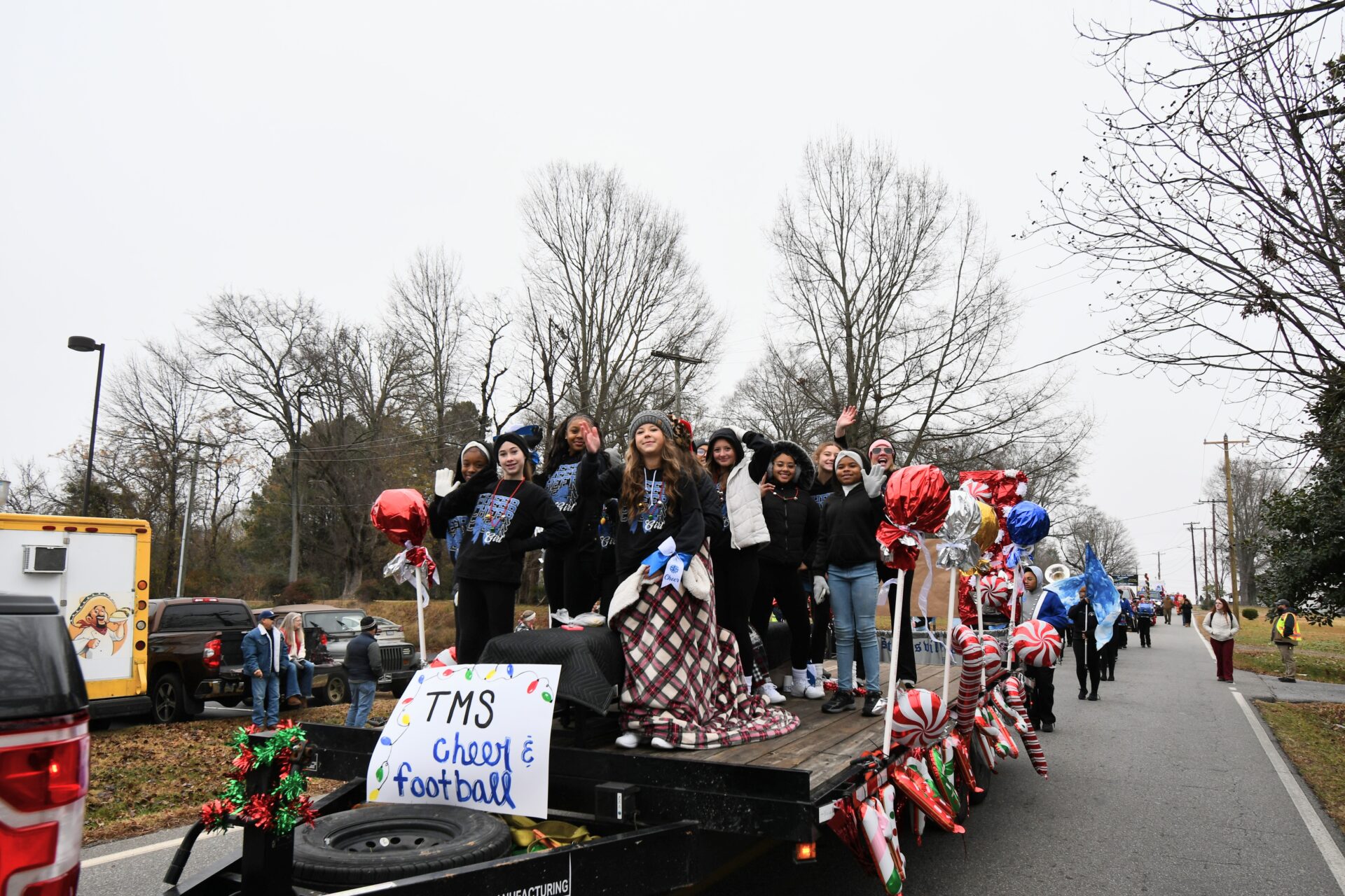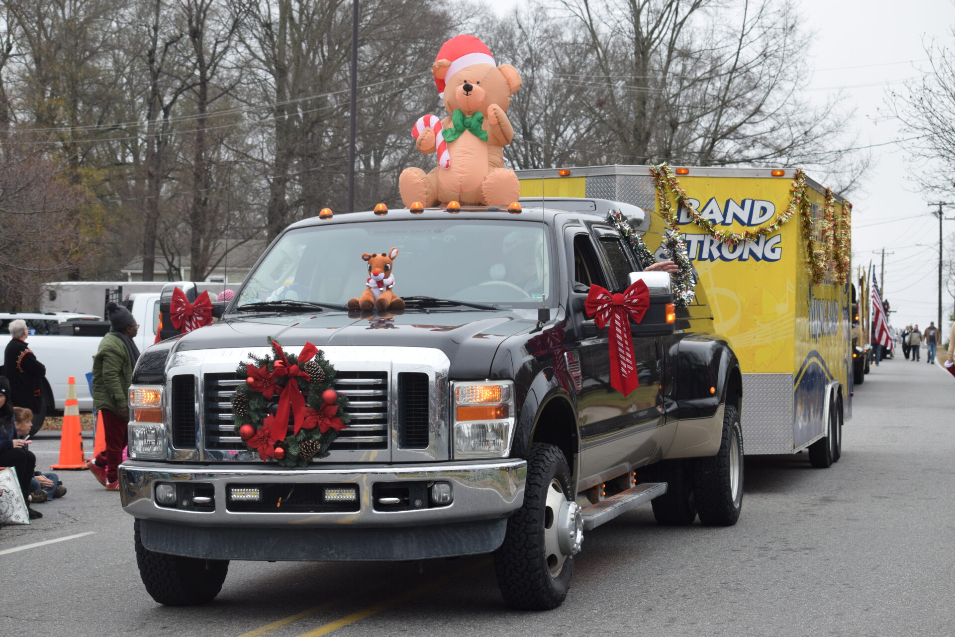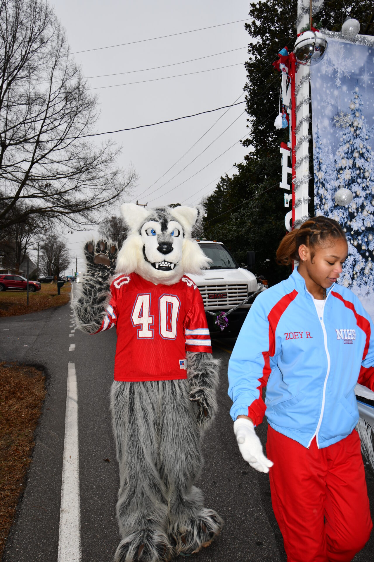 The South Iredell High and Statesville High bands belted out holiday tunes, and the North Iredell High float featured a snowy scene with the Abominable Snowman, Raider cheerleaders, and the NIHS mascot.