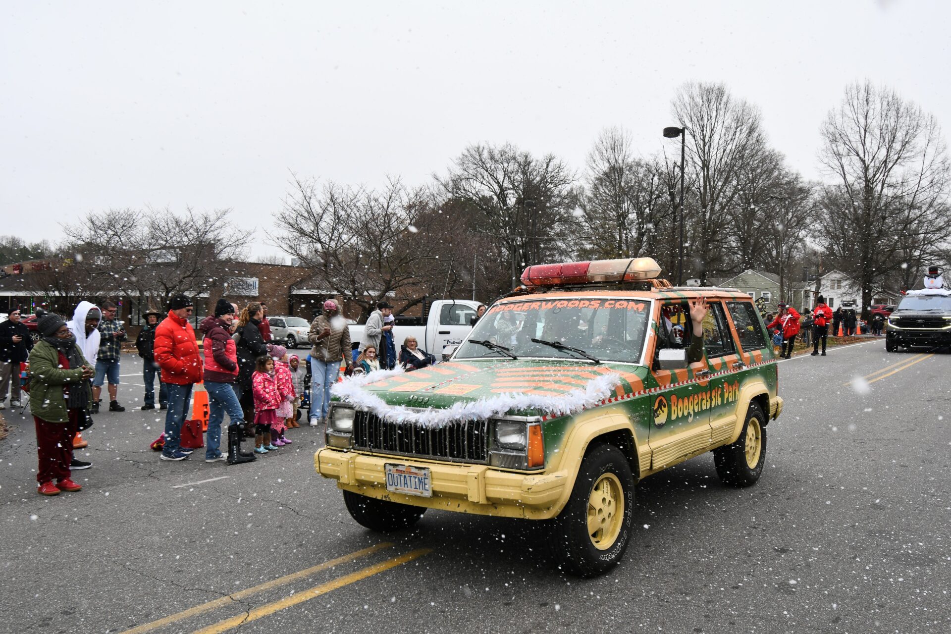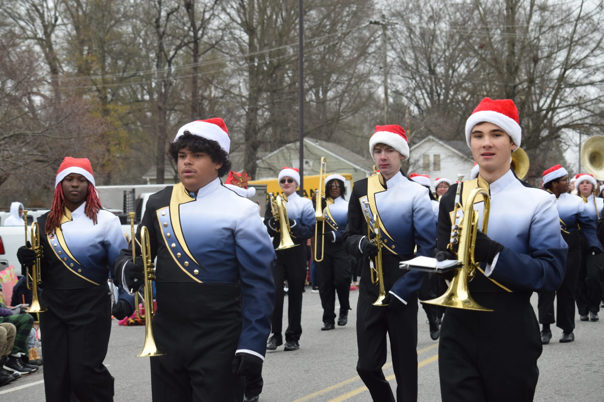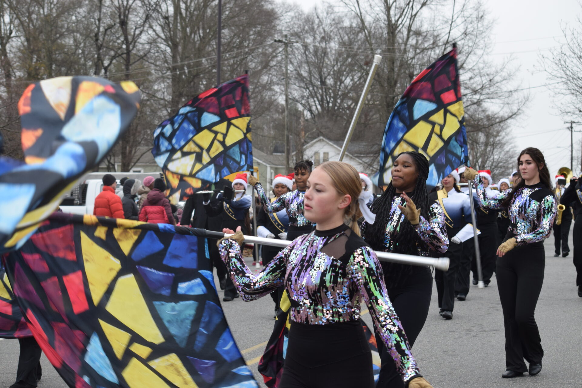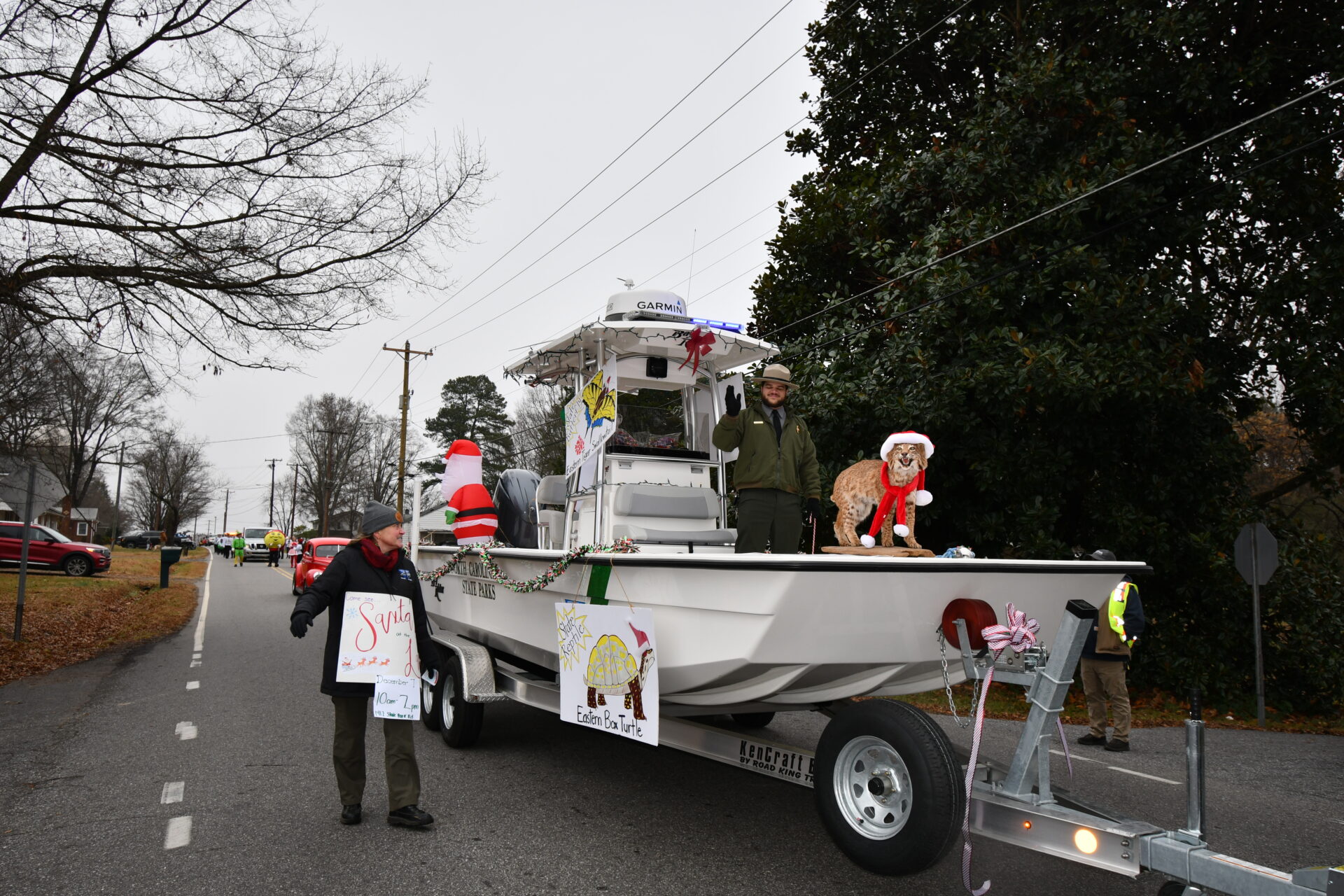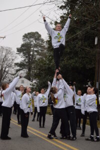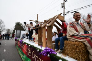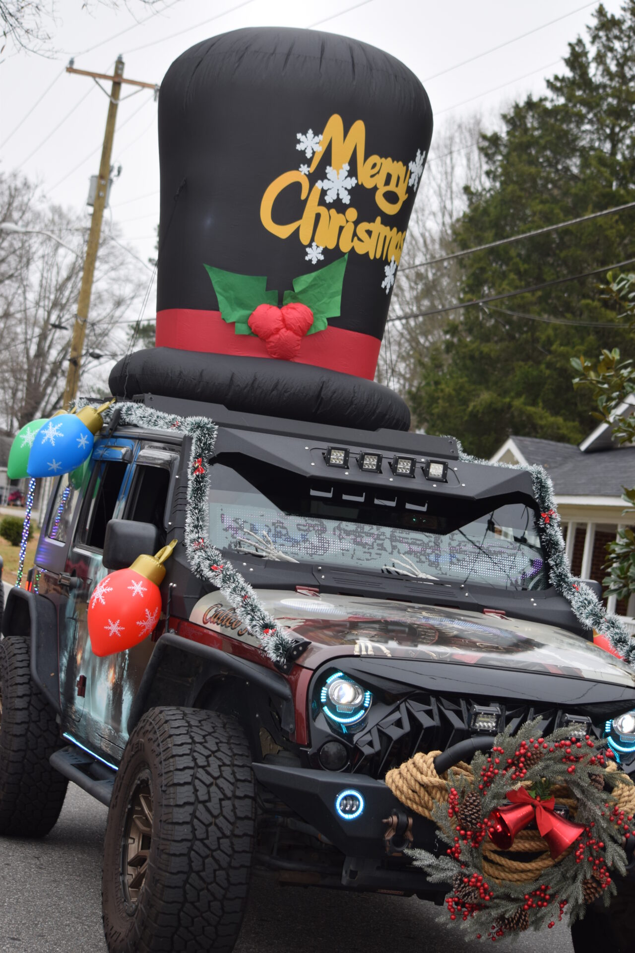The South Iredell High and Statesville High bands belted out holiday tunes, and the North Iredell High float featured a snowy scene with the Abominable Snowman, Raider cheerleaders, and the NIHS mascot.