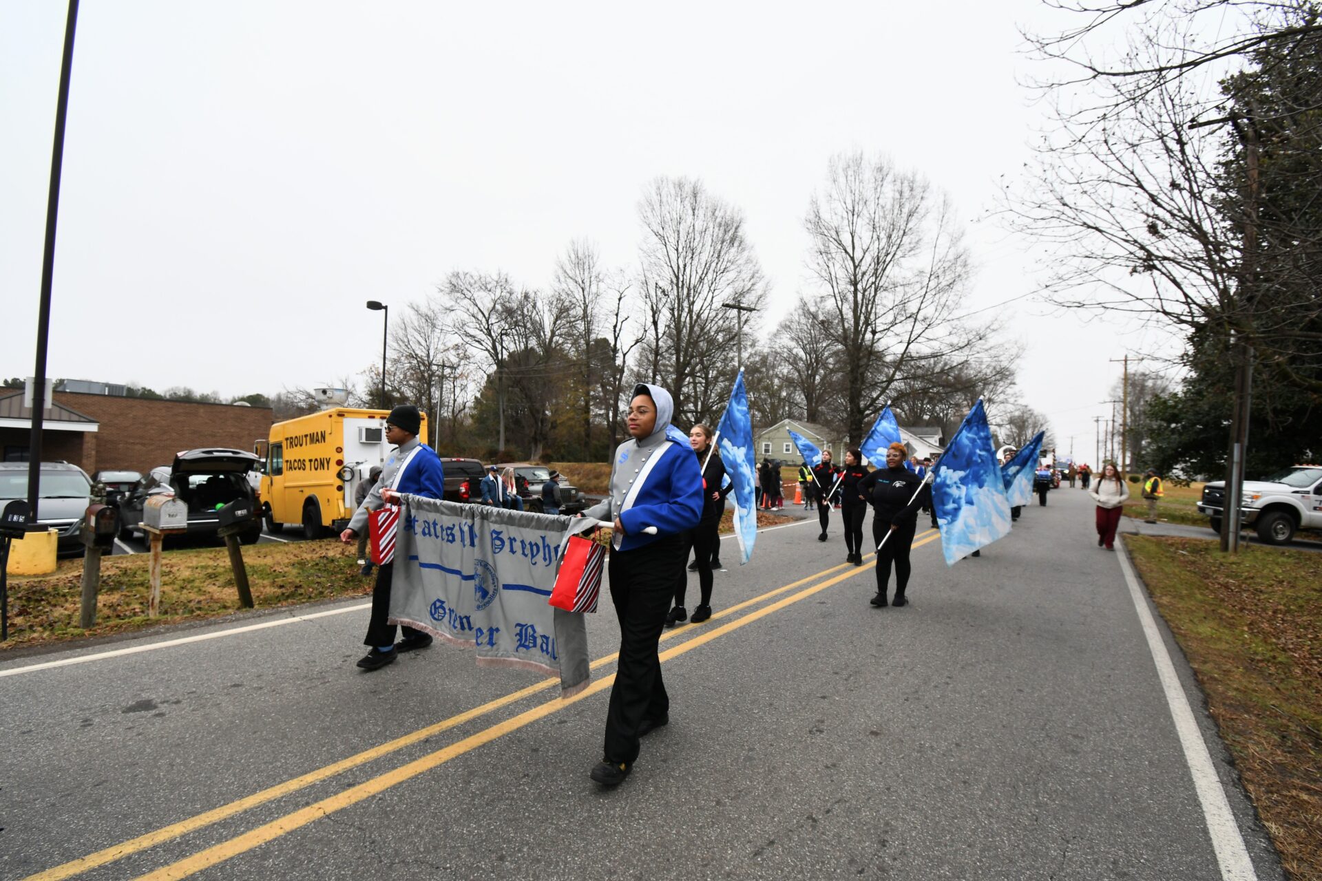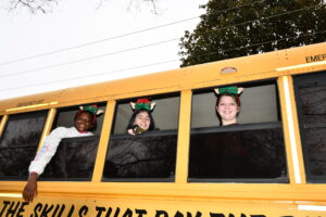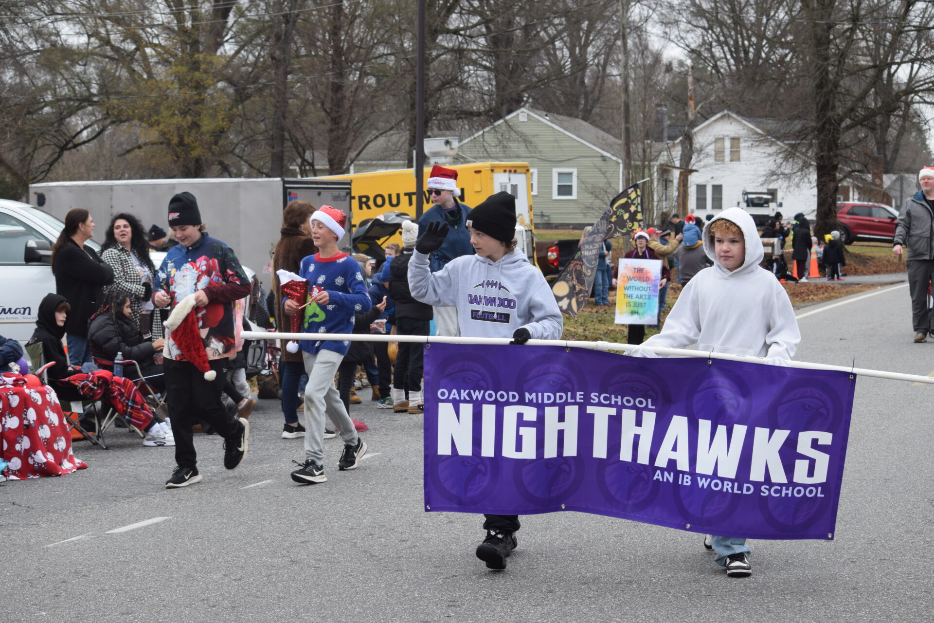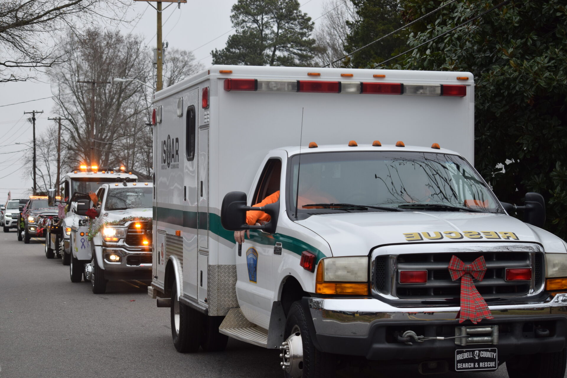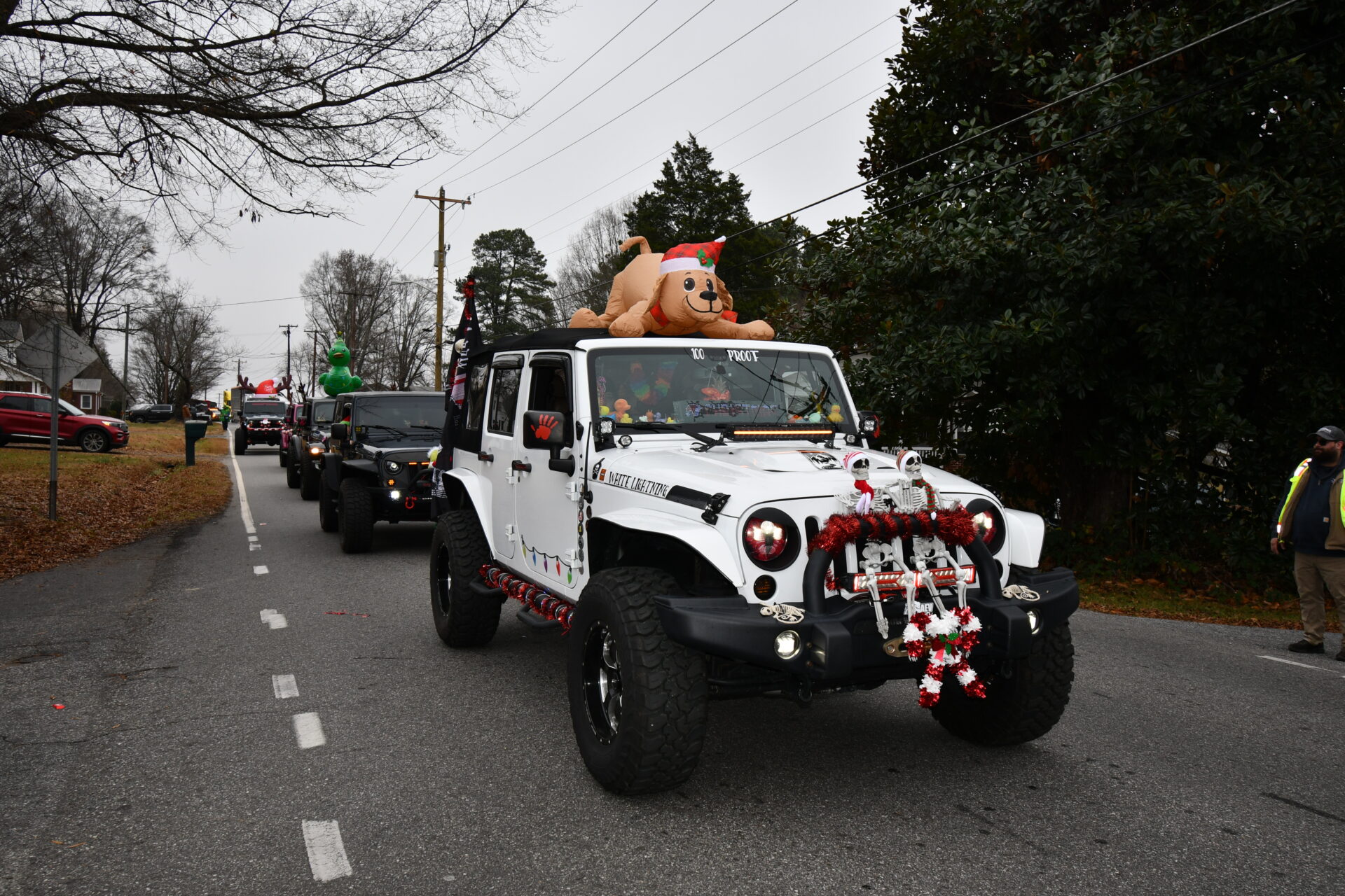 The South Iredell High and Statesville High bands belted out holiday tunes, and the North Iredell High float featured a snowy scene with the Abominable Snowman, Raider cheerleaders, and the NIHS mascot.