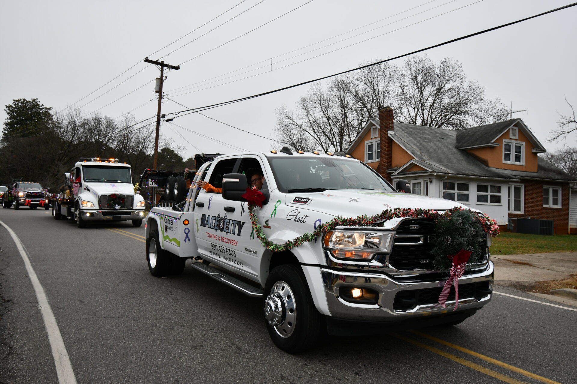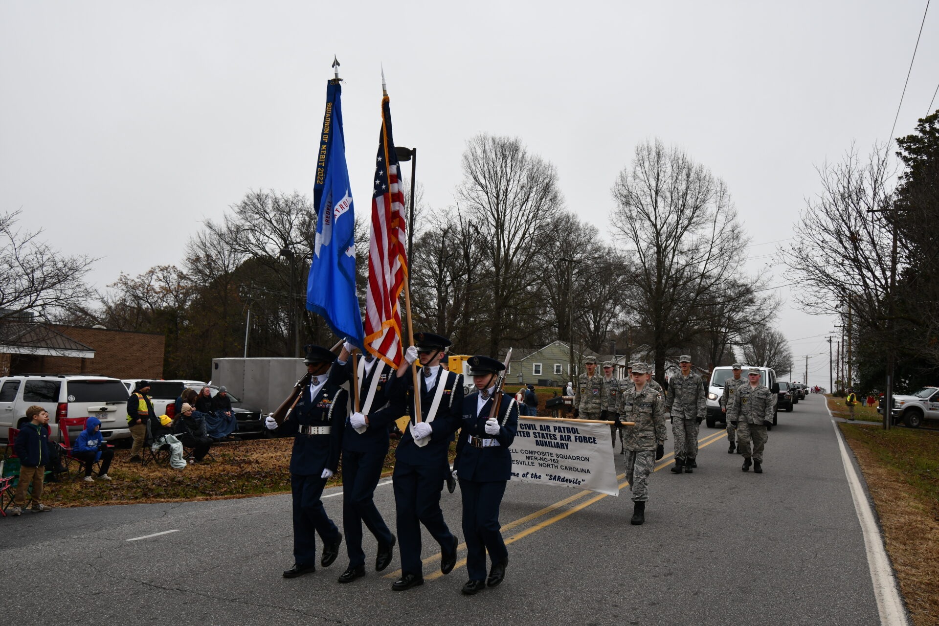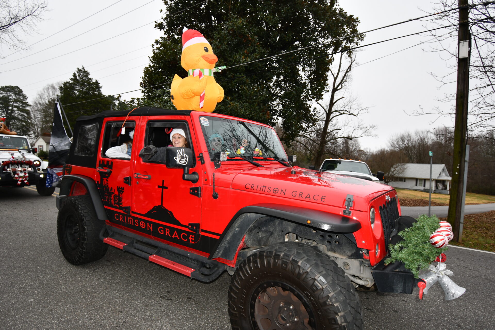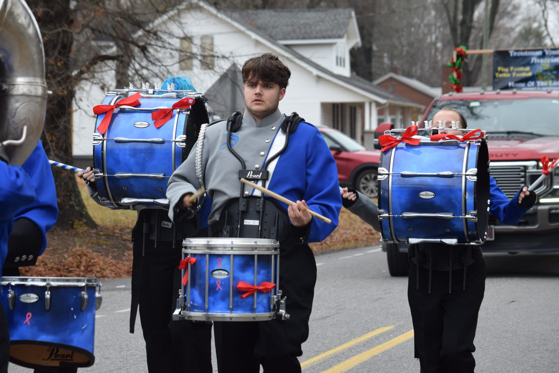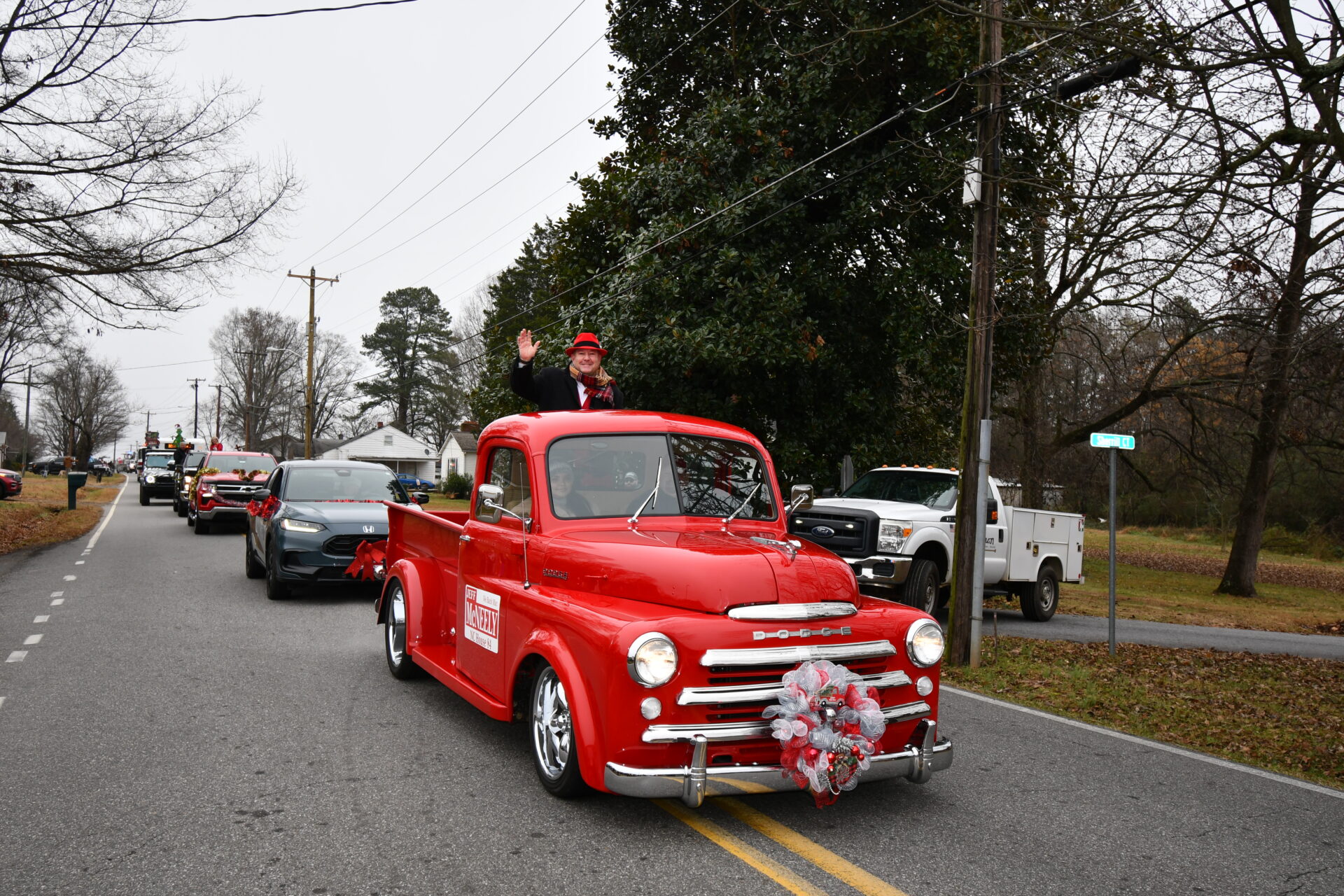 The South Iredell High and Statesville High bands belted out holiday tunes, and the North Iredell High float featured a snowy scene with the Abominable Snowman, Raider cheerleaders, and the NIHS mascot.