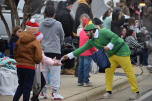 Before appearing in the parade, Santa attended the Rotary Club’s annual Santa Pancake Breakfast, which will benefit the South Yadkin Baptist Association Toy Stores for Jesus, which helps Santa fulfill disadvantaged children’s Christmas wishes in the community. The club also collected donations of non-perishable food and toys from attendees.