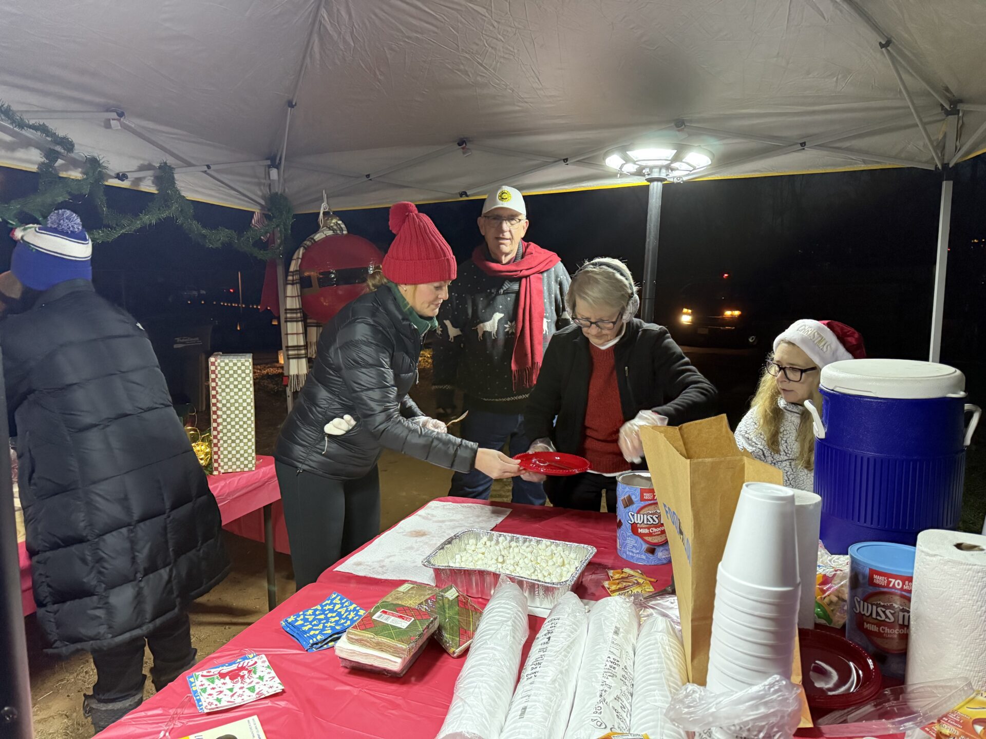 Troutman Ruritan Club and Troutman Baking Co. provided hot cocoa and marshmallows, hot apple cider, and delicious cookies. Freedom Church served hot coffee.