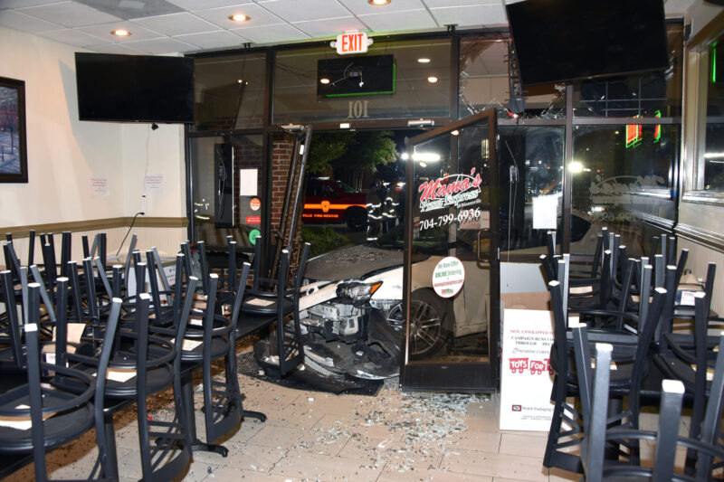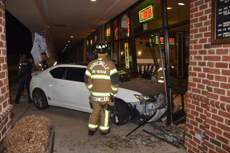 Mooresville Fire Rescue personnel, Mooresville Police officers and Iredell County EMS responded to a report of a structure collapse on Brawley School Road about 10:48 p.m. Friday. Arriving units found a car had struck a column outside the structure and crashed into the front of Mama’s Pizza Express.