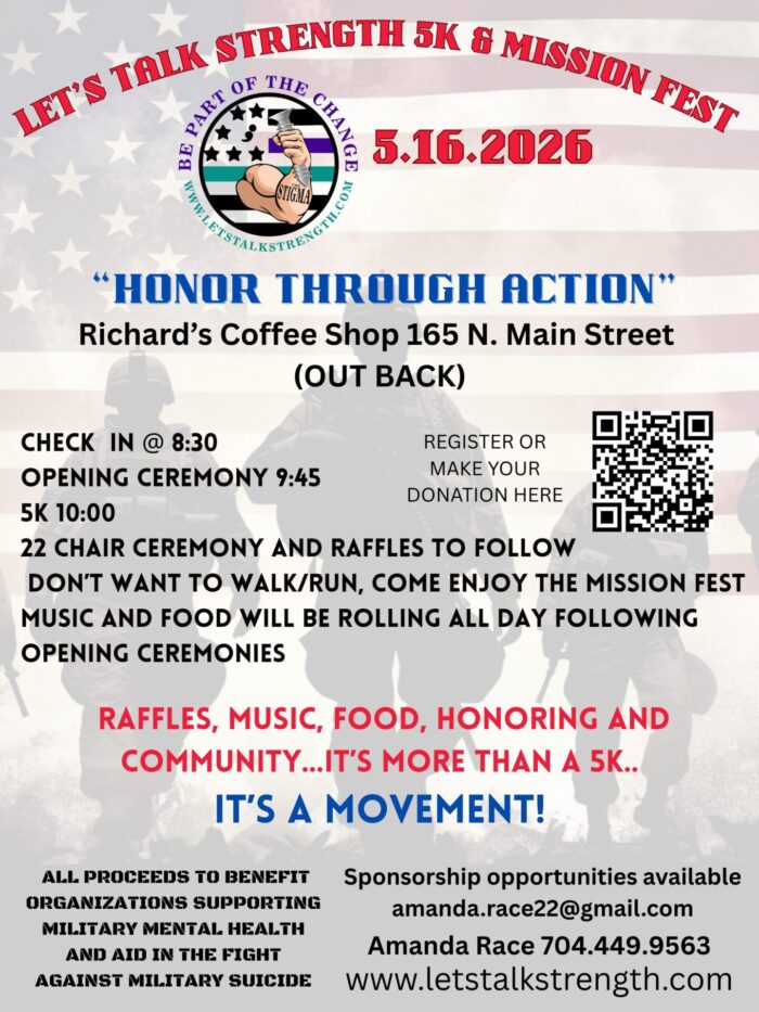 Let’s Talk Strength Inc. will present the 6th Annual 5K & Mission Fest on May 16 in Downtown Mooresville.