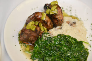 Food is also a big deal at the club. Members recently enjoyed “A Taste of France,” a five-course meal and wine pairing. But the standard fare is much more standard than the Fennel and Apple Salad A La Lyonnaise, Bone Marrow and Duck Duet offered that evening.