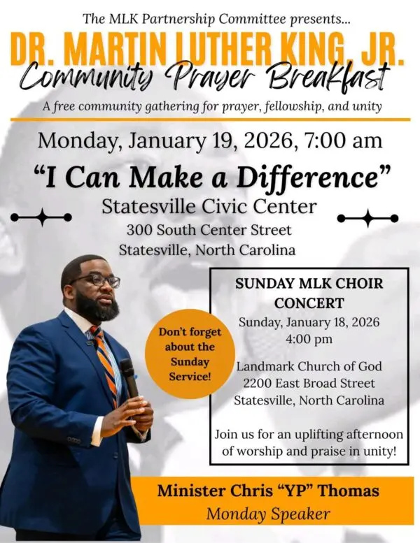 The community is invited to attend the 31st annual Martin Luther King Jr. Community Breakfast & Celebration will be held Monday, January 19, at 7 a.m. at the Statesville Event Center.