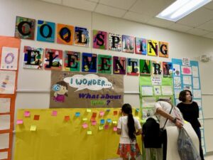 That sense of connection extended beyond the art itself. Inside the classrooms, parents were a part of student-led conferences, where children take ownership of their learning and their work in all subjects.