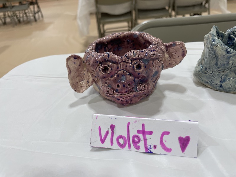 Local ceramist Olivia Lenderman had her artwork on display and talked with the students about her pottery. She works with “wild clay” and told students about her various techniques, including incorporating glass into the glazed look of some of her vases.