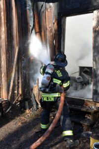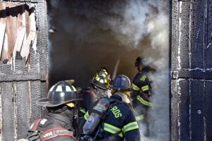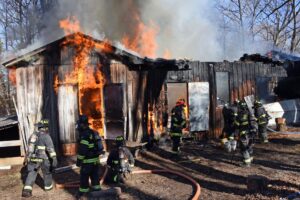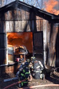 A second alarm was quickly transmitted, and additional units responded to the scene. Three hose lines were put into operation as crews battled the heavily involved structure fire. The fire was placed under control at 2:09 p.m., and crews continued to overhaul and hit hot spots hours after the control time.