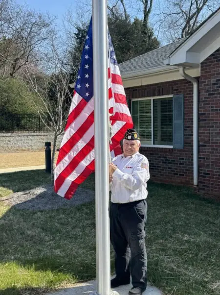 Family members and friends of Bobby James, including his wife Jane James, attended the ceremony. Hospice staff gathered alongside members of the organization’s Board of Directors, including Pam Britt and Ronald Mack, to witness the first raising of the American flag at the hospice house.