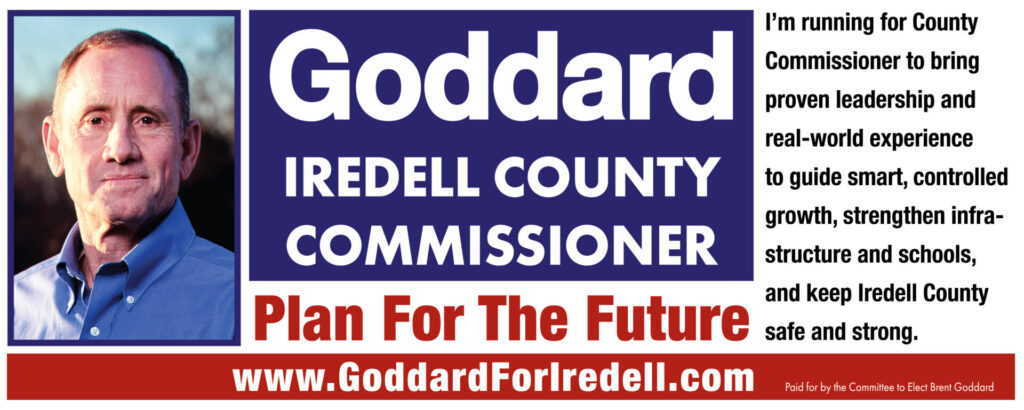 GODDARD: Based on the rapid growth in Iredell County, I saw some gaps in experience and knowledge of the current Board of Commissioners and knew that I had the skills to fill those gaps and help the other four members of the board make future proactive decisions instead of being reactive. My experiences with over 40 years of strategic planning combined with my two masters degrees, give me the skills to excel in this role.