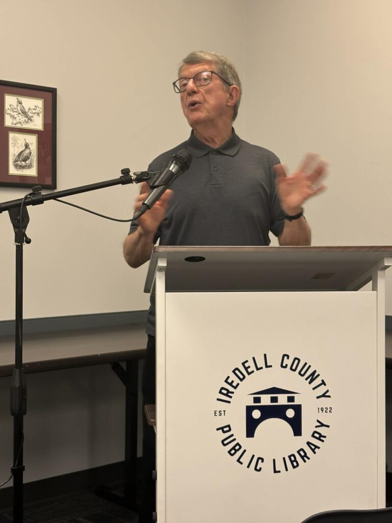 Historical re-enactor John Misenheimer shared information about a man billed as one of Iredell County’s best-known preachers during another event at the library. Dressed in period costume, Misenheimer talked about the Rev. James Hall, who is buried at Bethany Presbyterian Church on Turnersburg Highway.