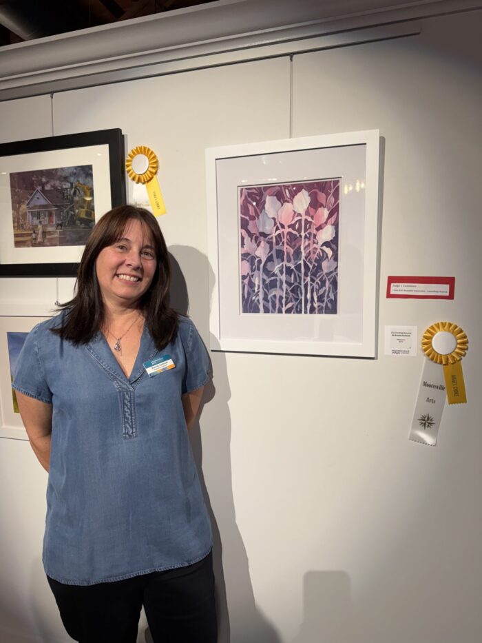 Sixty-six artists entered a total of 123 entries in this year’s show. Artists from Mooresville, Cornelius, Davidson, Charlotte and beyond are showcasing their talent and creativity in this exhibit, which is one of Mooresville Arts most popular and long-standing shows. Artwork ranges from paintings, drawings, mixed media, collage, pottery, and more.