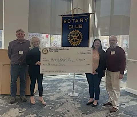 The Mooresville-Lake Norman Rotary Club recently presented HealthReach Community Clinic with a $4,000 check to support the organization’s work in the community. Keri Montagnino accepted the donation on behalf of the clinic.