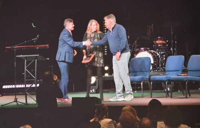 Chamber of Commerce President Kirk Ballard posthumously awarded the President’s Award to “visionary” Rick Howard, who, with son Brad, developed the Langtree at the Lake area at Exit 33. Brad and widow Pam Howard accepted the honor on behalf of the Iredell County native, who passed away in August. Ballard praised the award recipient for his efforts to expanded opportunities and economic prosperity for community members.