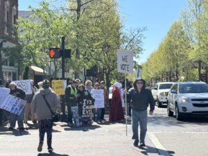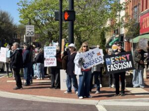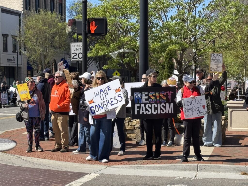 “For me, this all started with seeing how cruel, violent, and lawless ICE agents were acting,” said Maggie Hurst, a Statesville resident who protests most Saturdays downtown on the square. “After the first protest in Hickory last April, I felt that I, personally, needed to put myself out there in a highly visible way, to our Statesville community.”