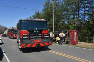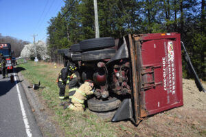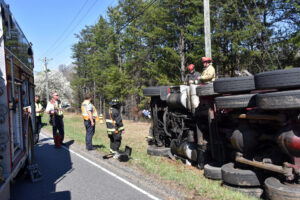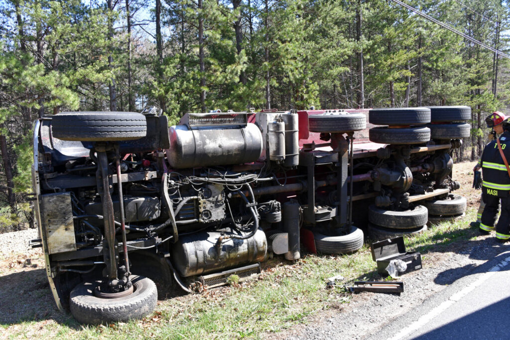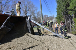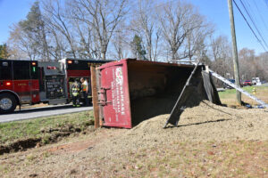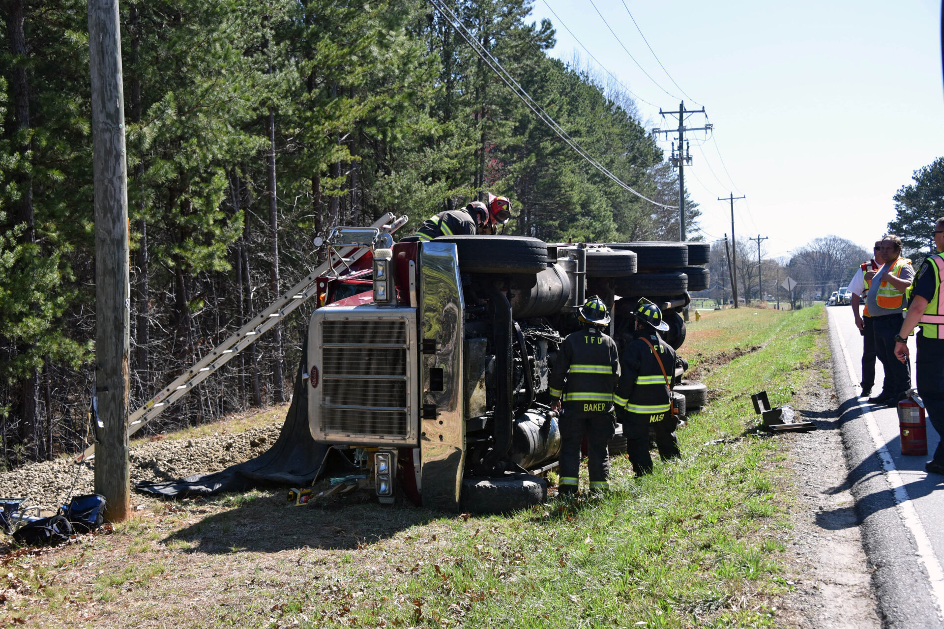 Troutman Fire Rescue, Iredell County EMS and Troutman police responded to an overturned dump truck on South Main Street in Troutman about 12:13 p.m. Tuesday. Firefighters removed the windshield and extricated the driver from the truck, and EMS personnel evaluated him. Crews stopped a fuel and hydraulic fluid leak until a hazardous materials unit from the tow company arrived and could pump the fuel tank out. South Main Street was closed for several hours from Ostwalt Amity Road to Autumn Leaf Road until the scene was cleared.