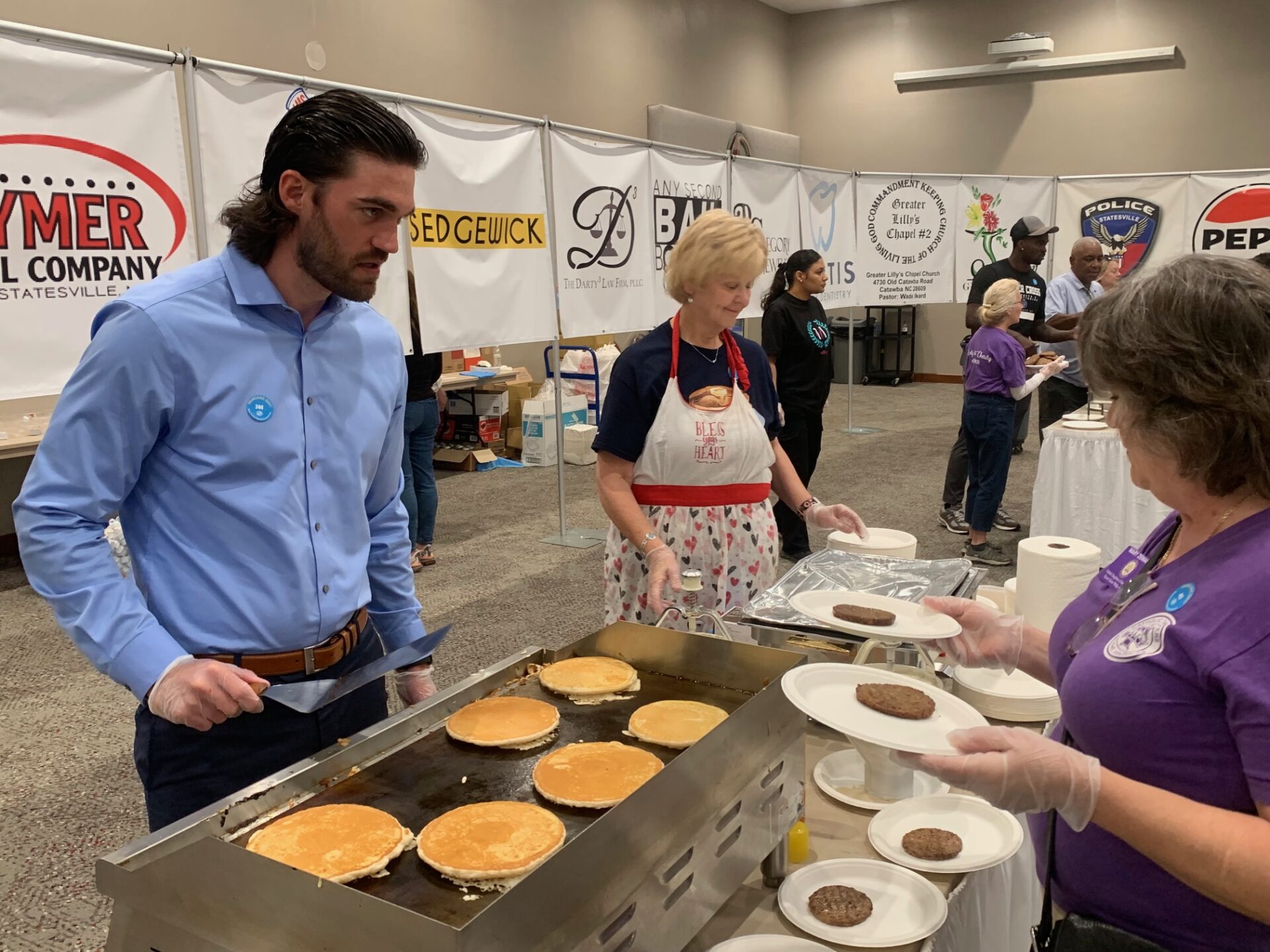 Statesville Mayor Doug Hendrix was among the celebrity chefs who took a turn flipping pancakes.