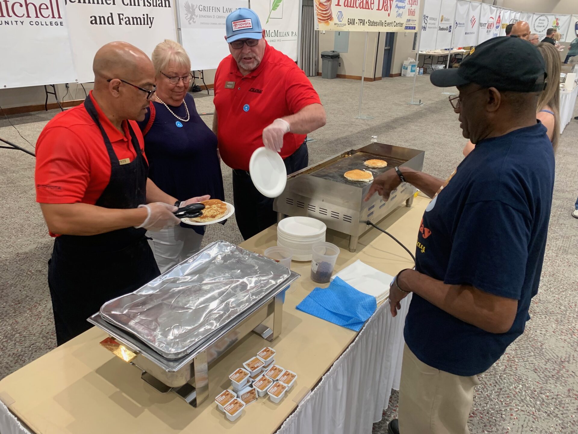 The Statesville Event Center was full of smiles on Thursday for the Boys & Girls Club of the Piedmont’s annual Pancake Day. More than 100 volunteers, including sponsors and club members, helped the event run smoothly.