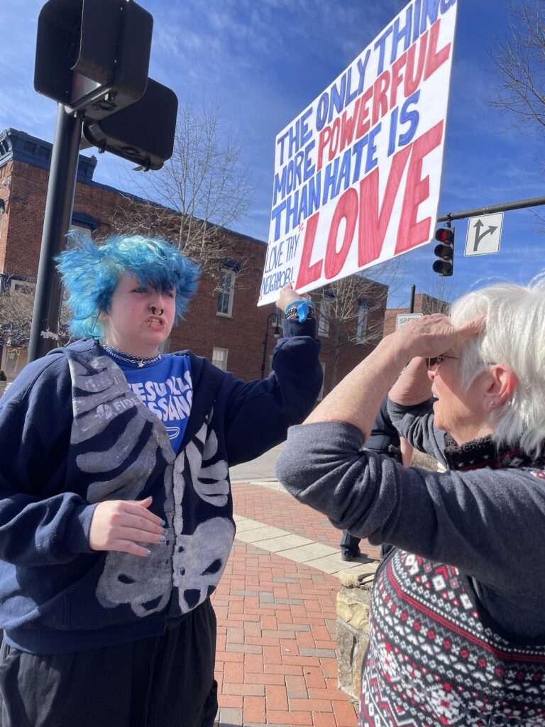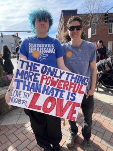 My poster is, ‘The only thing more powerful than hate is love.’ And I have ‘Love thy neighbor,’” he said.