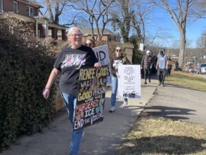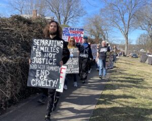 Among the 10 to 15 protesters, the energy was peaceful. The group felt supported as motorists honked their horns or shouted encouragement as they drove by.