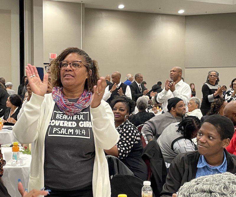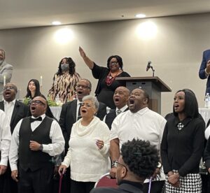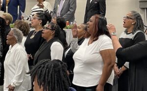 Rochelle Gray Brown opened the program with a stirring rendition of “Lift Every Voice and Sing,” as many in the audience joined in.