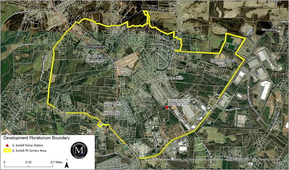 The Town of Mooresville has issued a moratorium on new development approvals in the South Iredell Pump Station service area.